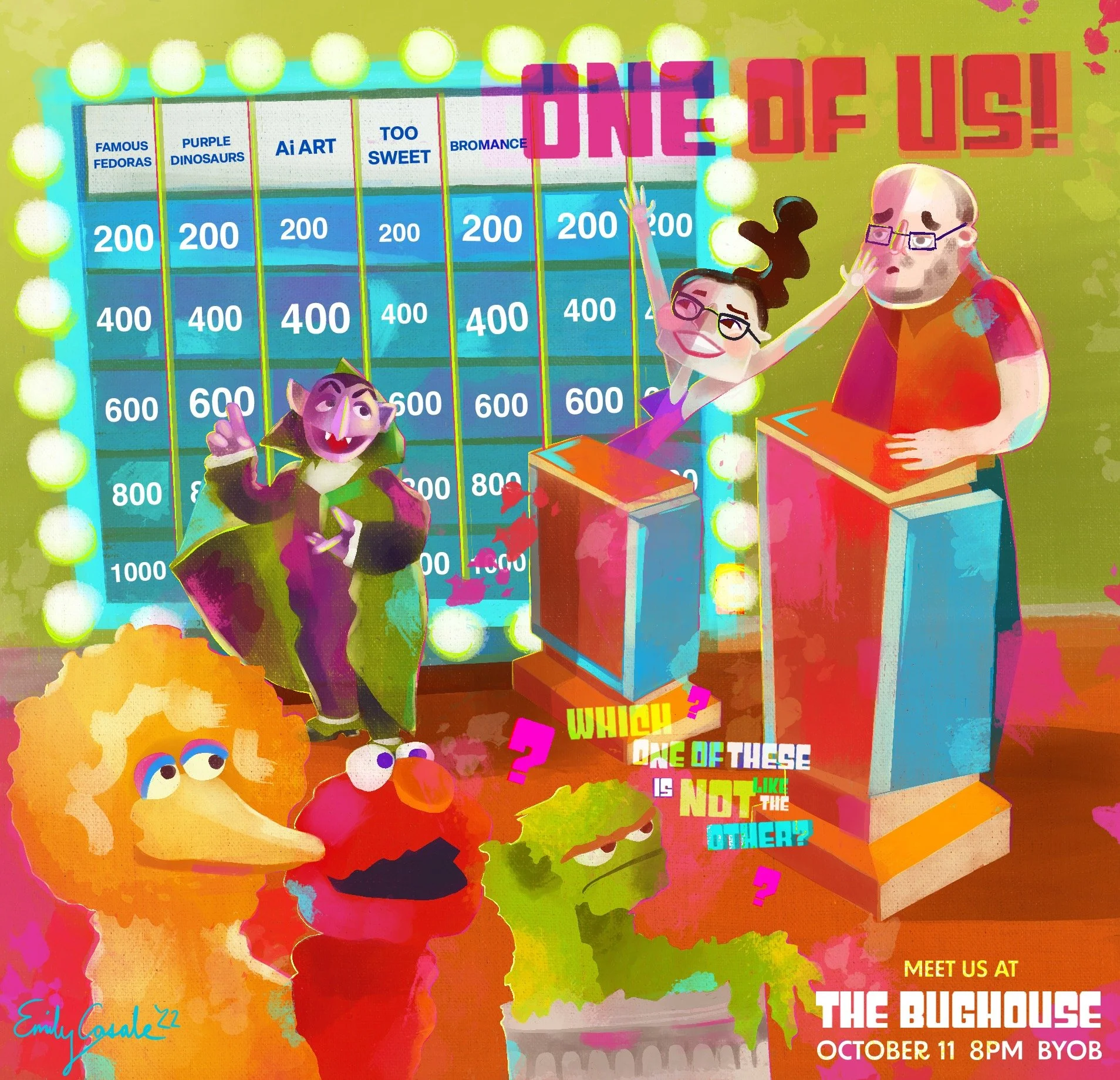 A group of 5 improvisors and 1 performer do a long form improv show. At the end of the show, the audience guesses who has never done any improv before.